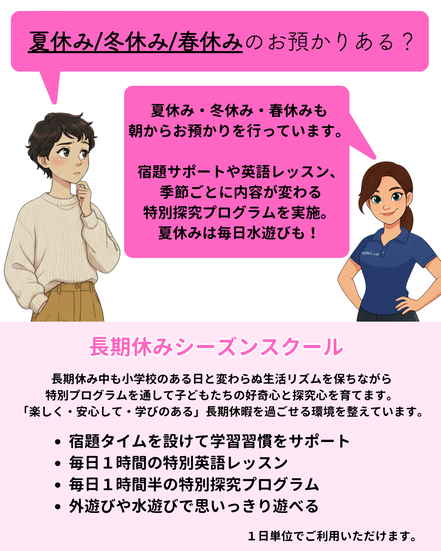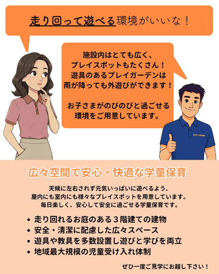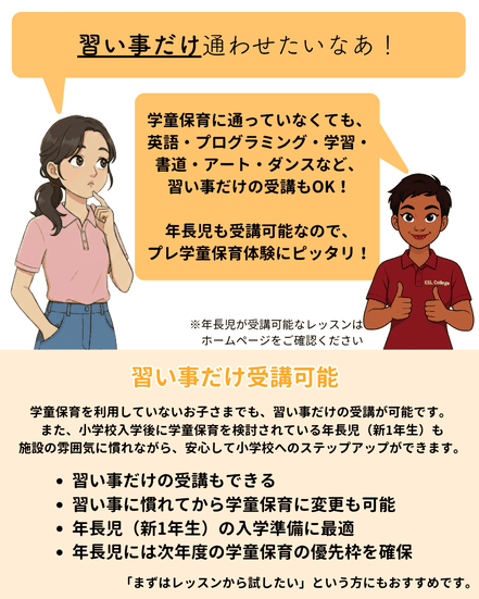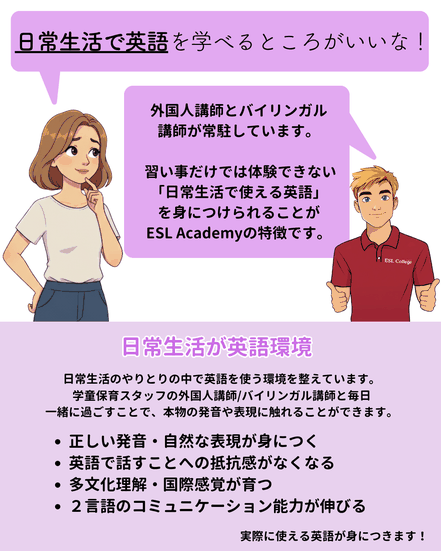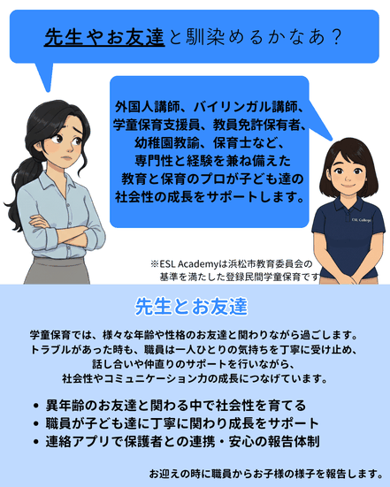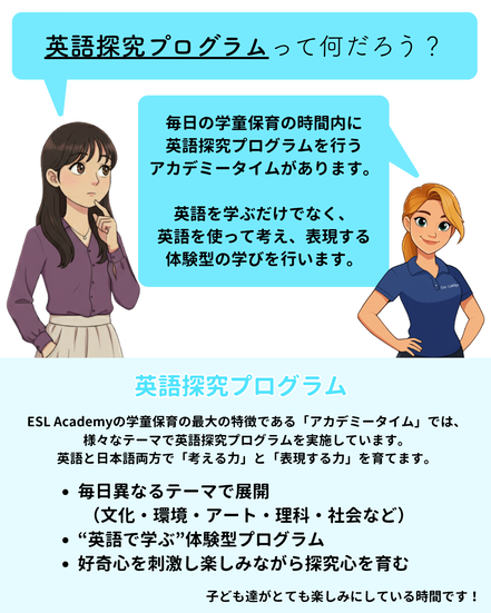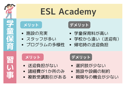 新たにESL Academyのご利用をご検討いただく際には、公設学童保育との違いや特長をご理解いただくことが重要です。