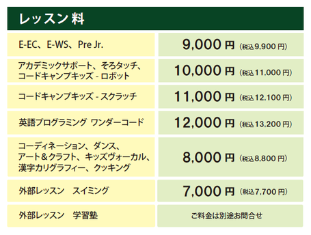 レッスンの組み合わせ、アフタースクール併用の有無により、割引が適用されます。